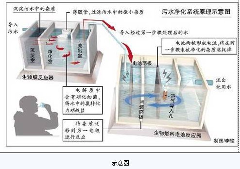 胡志強說,這套凈水系統(tǒng)分為兩個部分,一個是生物膜反應器,另一個是微生物燃料電池。這兩個組件可以過濾水中細微雜質(zhì),使污水達到飲用水標準。